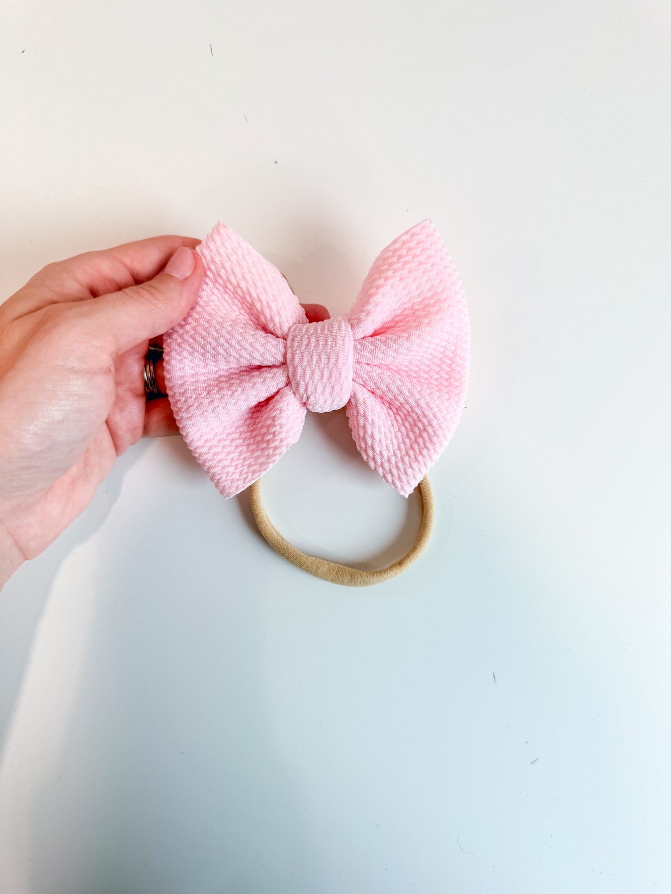 This Pink Fancy Bullet Bow is the ultimate accessory for your little nestling. Crafted from durable bullet fabric, the Fancy bullet bow headwrap is designed to maintain its shape without sagging. Perfect for bringing home baby outfit, all the way to summer adventures!